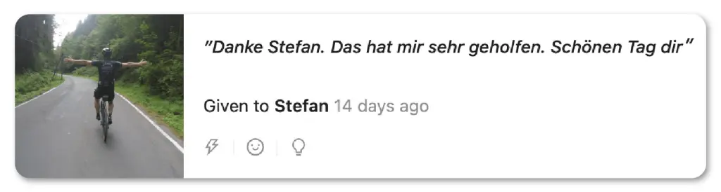 Später gab der Kunde ein äußerst positives Feedback bezüglich Stefans Beratung.