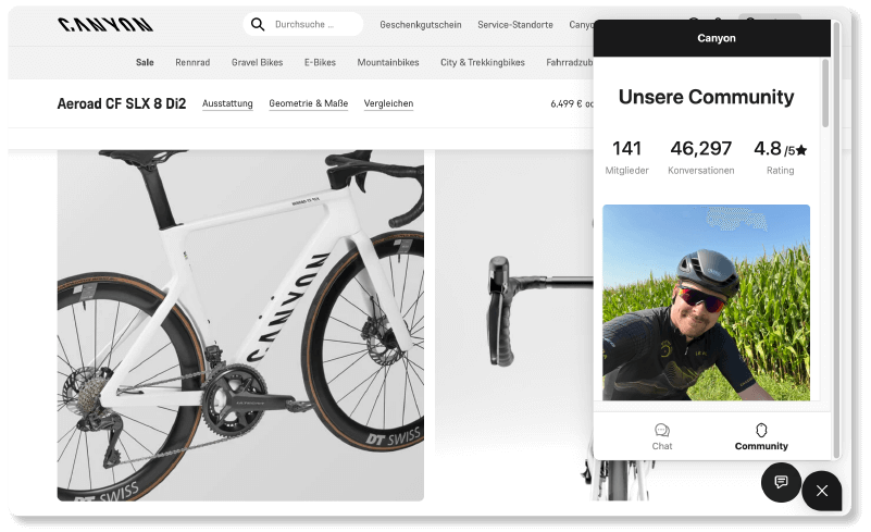 Unsere Community Advice Solution ist mehr als nur Live-Chat-Beratung! Wir verbinden Rat suchende Online-Shopper mit leidenschaftlichen Markenfans aus deiner treuen Kunden-Community, die deine Produkte kennen und lieben. Echter Austausch, der Vertrauen und emotionale Markenbindung fördert.