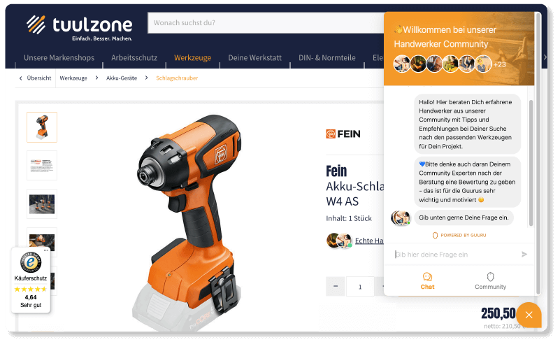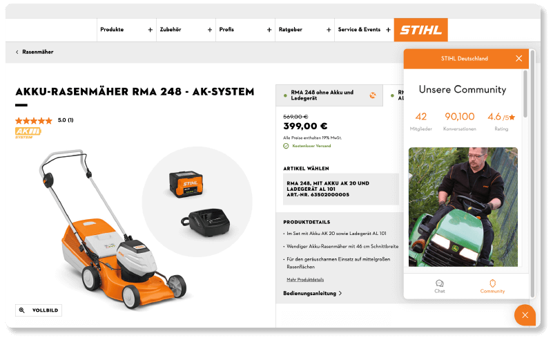 Mit Community Content fängst du Expertenmeinungen direkt aus Live-Gesprächen mit Shoppern ein. Sie werden automatisch auf den passenden Produktdetailseiten angezeig, ganz ohne zusätzlichen Aufwand.