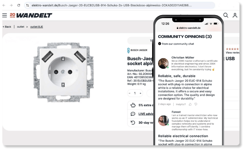 With Community Content, you capture expert opinions straight from live shopper conversations. They’re automatically displayed on the right product detail pages, with zero extra effort required.